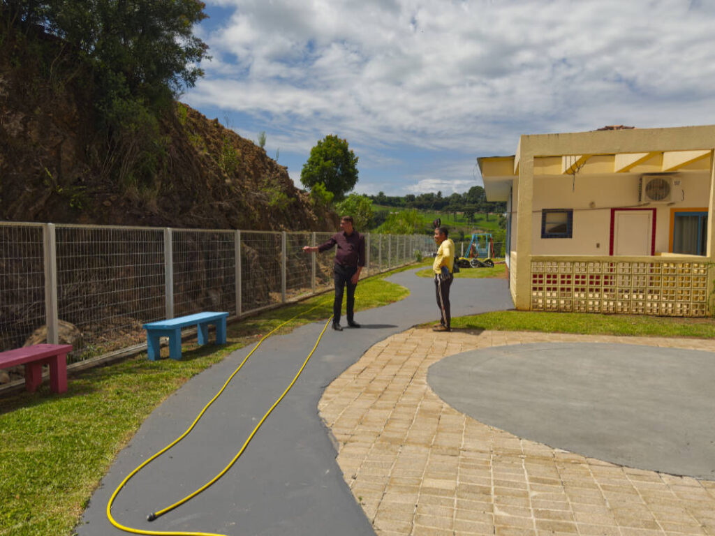 Já na EMEI Pedacinho do Céu, a equipe trabalha em adequações na estrutura, com destaque para as melhorias na pintura, contribuindo para um ambiente mais acolhedor para as crianças.